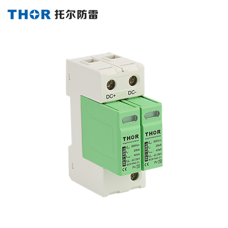 在光伏系統(tǒng)中,正極、負(fù)極和接地線之間均有保護(hù)。在正常情況下保護(hù)器處于高電阻狀態(tài),當(dāng)電網(wǎng)因雷擊或其他原因出現(xiàn)浪涌過(guò)電壓時(shí),保護(hù)器在納秒級(jí)時(shí)間內(nèi)迅速導(dǎo)通,將浪涌過(guò)電壓引入大地,從而保護(hù)電網(wǎng)上的用電設(shè)備。當(dāng)該浪涌電壓通過(guò)保護(hù)器且消失后, 保護(hù)器重新恢復(fù)到高電阻狀態(tài), 從而不影響電網(wǎng)的正常運(yùn)行。